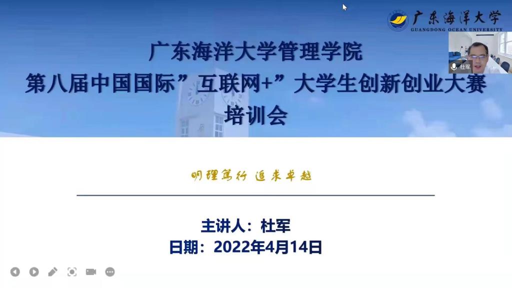 为了帮助团队进一步了解大赛评审规则,对标对表完善作品,提升团队核心竞争力,提高公司“互联网+”比赛的整体水平。4月14日公司通过腾讯会议平台举办了校赛赛前培训会。beat365官网登录中文副经理杜军出席会议,并对参赛队伍进行培训指导。比赛指导老师陈晓文主持会议。