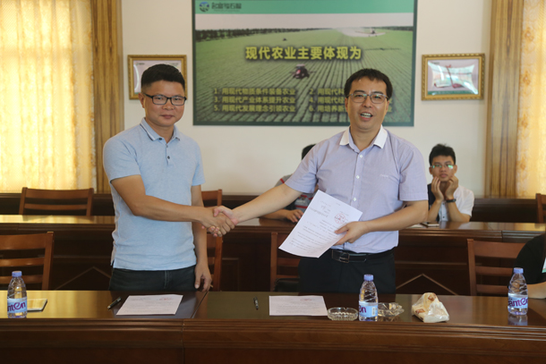 考察的第二站是高州市新芝泰农业科技有限公司,该公司朱卫培总经理热情地接待了调研团。在朱总经理的陪同下,师生考察了该公司的种植区、养殖区、食农教育区、农产品加工区、农事体验区和休闲娱乐区,其中,重点考察了该公司的有机番石榴种植示范基地、有机火龙果种植示范基地、智慧种植基地,以及珠茂火龙果庄园产业扶贫项目,该项目采用“公司+合作社+农户”的运作模式,在对口扶贫单位资金的支持下,通过发展龙头企业来壮大产业实现江口村整村脱贫。调研期间,校企双方还召开了座谈会,商讨了下一步深入开展合作的方向和领域。座谈会结束后,双方举行建立研究生实习基地的签约仪式和挂牌仪式。