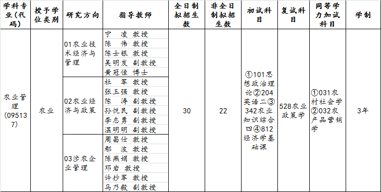 (二)农业硕士(专业学位)农业管理领域(095137)